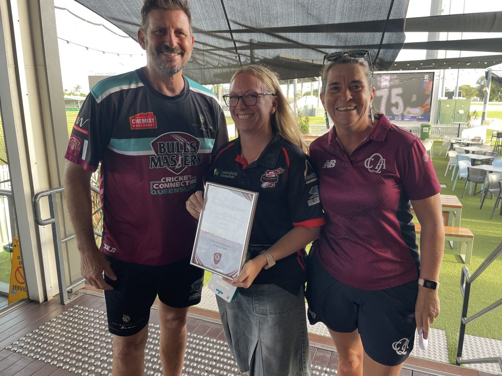 While in Mackay, Michael Kasprowicz, who has a volunteer recognition program named in his honour “Kasper’s Crew”, was able to present an award to Laura Dodd from the Norths Mackay club.
