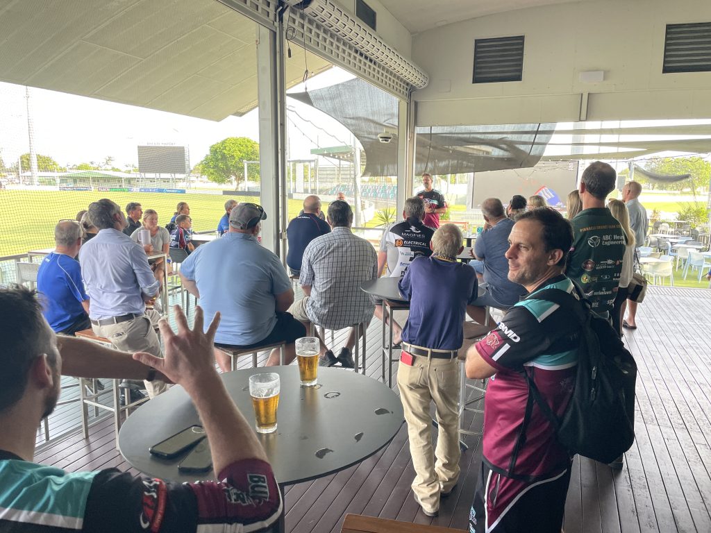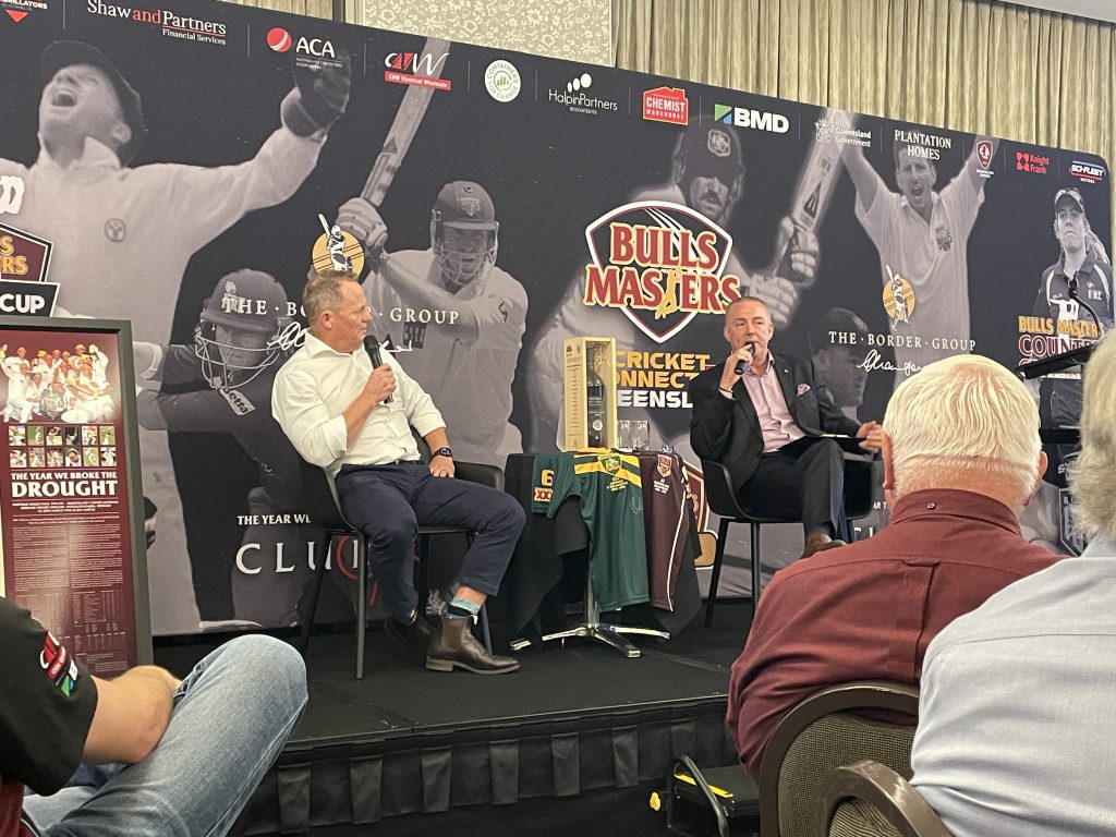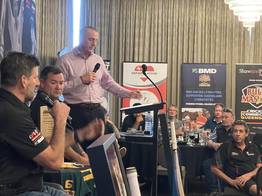 Michael Kasprowicz is an official ambassador for the Mackay Sports Foundation. The Bulls Masters held a fundraising lunch which was well supported by the locals. Rugby league legend, Kevin Walters joined the Bulls Masters for the lunch as a guest speaker. Michael Kasprowicz and Jimmy Maher were on stage too talking cricket in what was a highly entertaining and successful fundraiser.