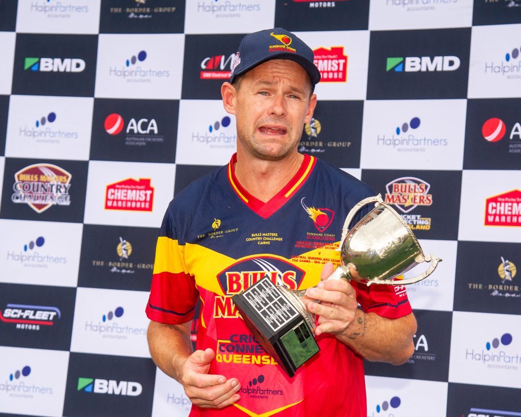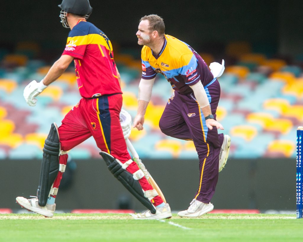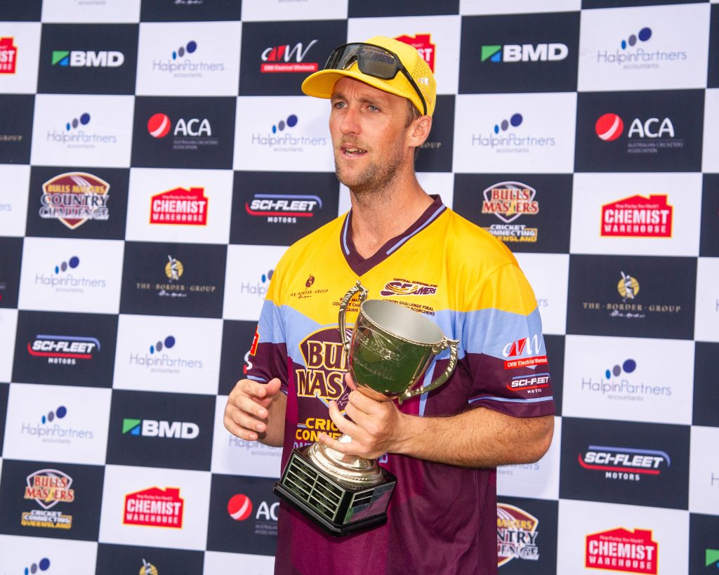 The Sunshine Coast Scorchers needed three runs to win from the final ball of a shortened Gabba final with Andy Batten cover driving the ball out to the sweeper and scurrying through for two to finish the game as a tie. With the rain starting to threaten there was no time for a super over to sort the winner and the teams were left to share the spoils for the first time in Country Challenge history.